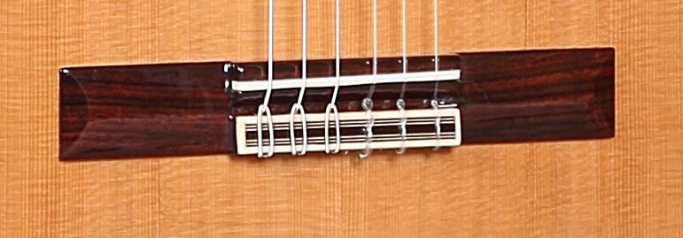 Der Hals wird von einem nicht sichtbaren Stück Ebenholz gestärkt. Eine dünne, leichte und siebenteilige Beleistung geben der Gitarre mehr Klang, Körper, Qualität, Lautstärke und Ansprache.