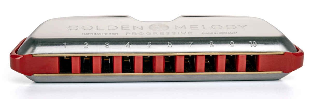 Die Golden Melody Progressive, HOHNERs einziges diatonisches Modell, das gleichtemperiert gestimmt wird, wurde radikal umgestaltet, um das Handling, die Stabilität und die Luftdichtigkeit zu verbessern.