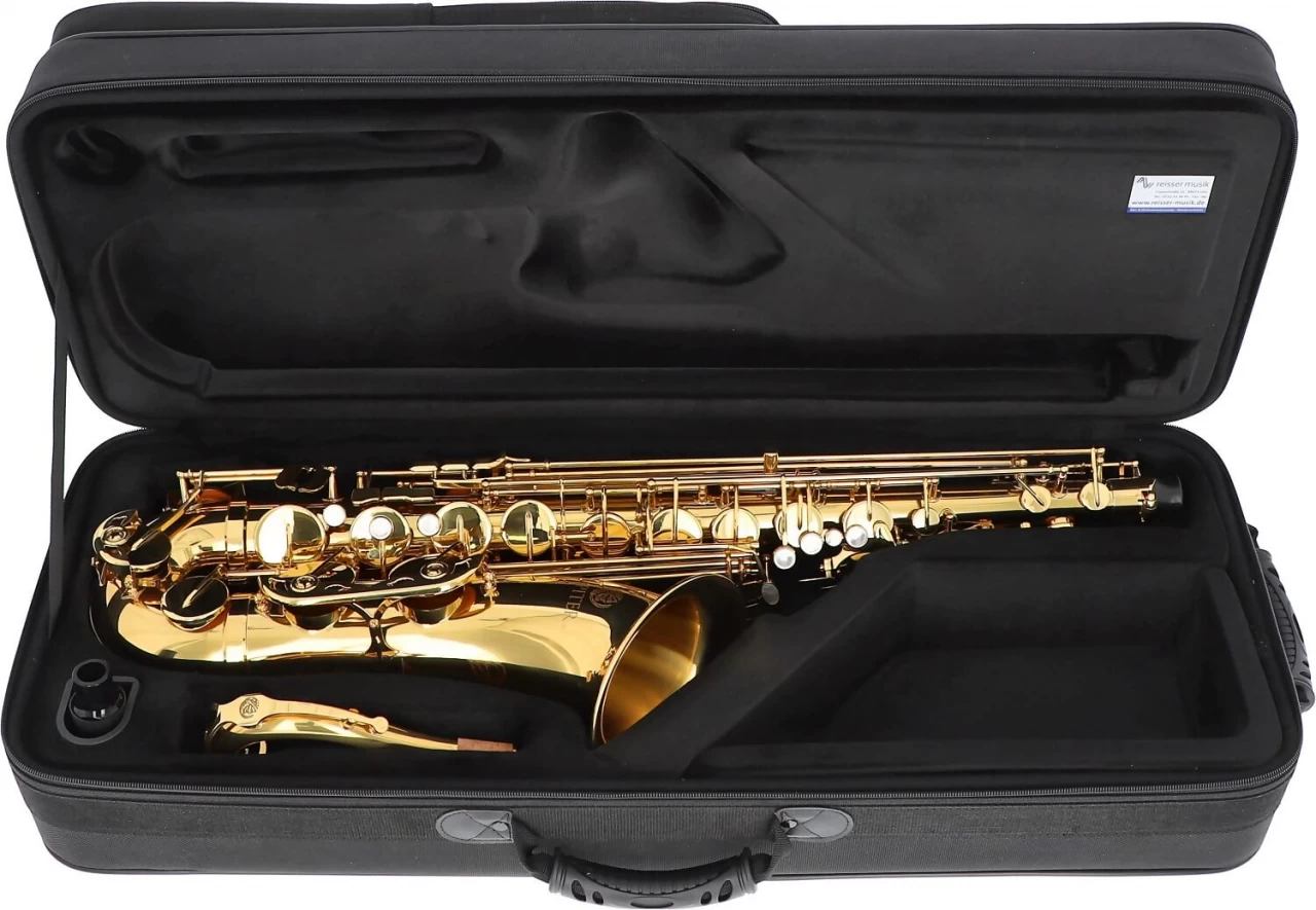 Das Saxophon für jede Bühne! Ob im Profi- oder Amateurbereich wird dieses Saxophon den Ansprüchen gerecht werden. Die solide Verarbeitung und die vielen patentierten mechanischen Details, wie der einstellbaren G-Mechanik und den wasserfesten Polsterresonatoren ermöglichen langlebige Freude am Instrument. Auch diese Serie ist mit den einstellbaren Seitenklappen für eine individuelle Spielbarkeit ausgestattet. Die schmückende Gravur auf dem Schallbecher unterstreicht die hochwertige Verarbeitung.