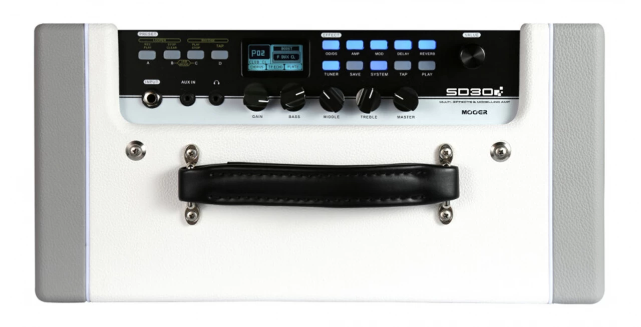 Die Mooer SD Verstärker-Serie ist eine harmonische Verbindung zwischen Mooers beliebter Digital Preamp Modelling Technologie und einer neuen Version traditioneller Solid-State Class A/B Verstärker-Schaltungen, die professionelle ‚Röhren-ähnliche‘ Leistung, Haptik und Feeling zu Einstiegspreisen bietet. Jedes Modell der Mooer SD-Serie ist mit zahlreichen Features und Effekten ausgestattet (einschließlich 8 Overdrive- und Distortion-Effekte, 25 Amp Head Simulationen, 9 Modulations-Effekte, 5 Delay-Effekte und 6 Hall-Effekte), die alles bieten, was du brauchst, um unglaubliche Sounds für die Bühne oder den Proberaum zu erstellen. Diese Sounds können in 40 Preset Slots gespeichert und bearbeitet werden. Die SD-Verstärker verfügen über eine einzigartige Jam-Sektion, die eine ganze Reihe von Tools für Solo-Performer und kreative Musiker enthält: Einen integrierten 150 Sekunden Looper, eine synchronisierbare Drum Machine sowie eine Bluetooth Verbindung und einen 3,5 mm Aux Input für die Wiedergabe deines Lieblings-Songs von einem externen Gerät. Der Mooer SD30 kommt mit einem 8″ Custom Speaker, der harmonische Obertöne und ein verbessertes Feeling mit Klarheit, Artikulation und Dynamik über den gesamten Lautstärkebereich des Verstärkers liefert.