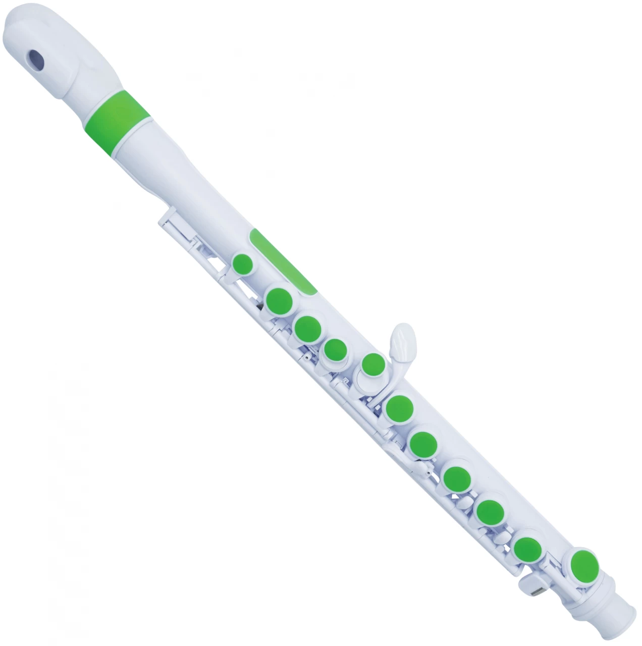 Die jFlute ist mit einem „Donut“ Kopfstück und extra Buttons zum besseren Erreichen einiger Klappen ausgestattet. Zu jeder NUVO Querflöte gehört die „Firstnote“ Mundlochplatte. Sie ermöglicht ein Anblasen der jFlute wie bei einer Blockflöte und fördert den Umstieg auf eine Querflöte gerade in den ersten Unterrichtsstunden.