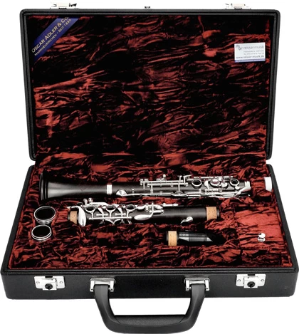 Die Klarinetten werden aus bestem, langjährig abgelagerten Grenadillholz hergestellt. Alle Metallteile sind aus Neusilber, hochglanzversilbert.