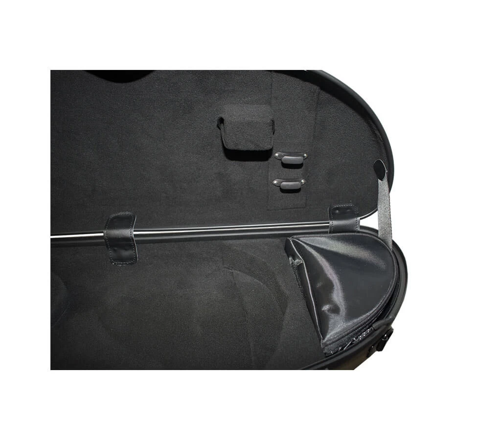 - gut gepolstertes Interieur in schwarzem Velour mit zwei Bogenhaltern