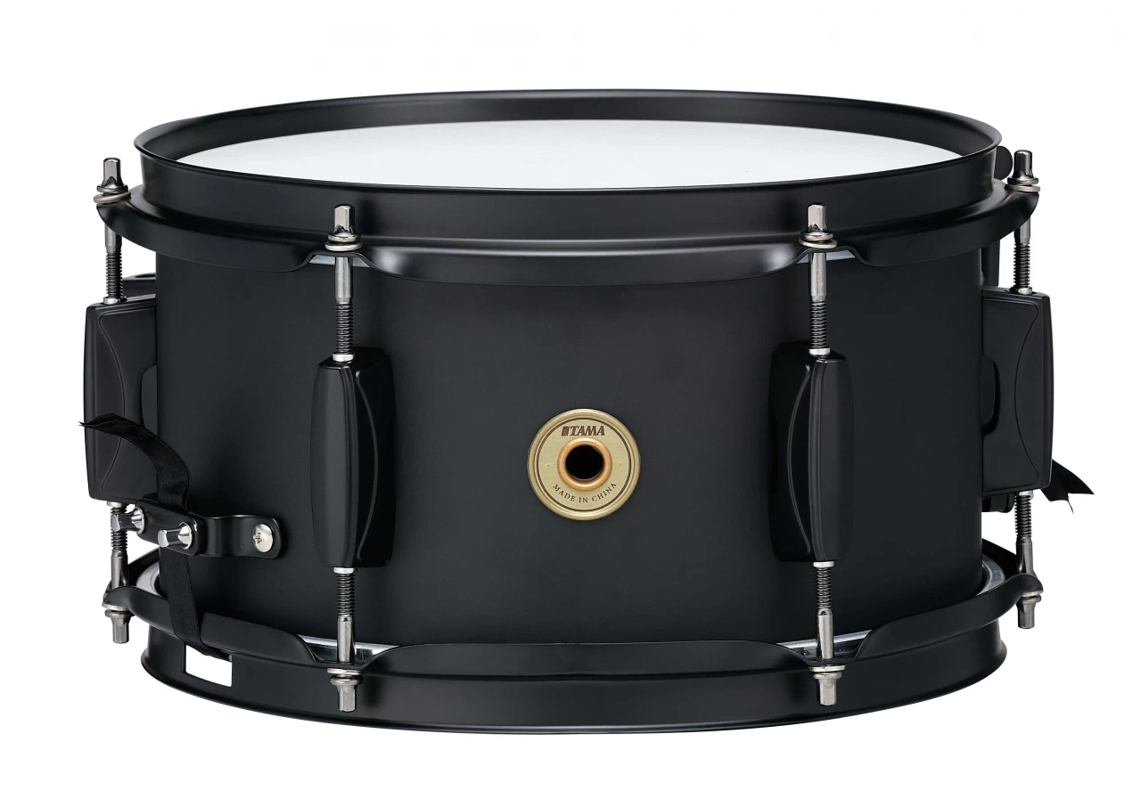 Diese Metalworks Black Steel Snare Drum bietet einen hellen Ton in hohen Stimmungen und eine sanfte Resonanz in tiefen Stimmungen. Ein 1,2mm mattschwarz gehaltener Kessel wurde so gefertigt, dass er eine Falz in der Mitte des Kessels als Stabilisierung bietet. Die Farbe der Kesselhardware wurde an die Farbe des Kessels angepasst.