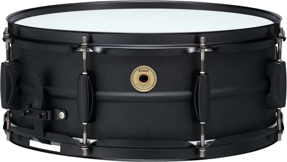 Diese Metalworks Black Steel Snare Drum bietet einen hellen Ton in hohen Stimmungen und eine sanfte Resonanz in tiefen Stimmungen. Ein 1,2mm mattschwarz gehaltener Kessel wurde so gefertigt, dass er eine Falz in der Mitte des Kessels als Stabilisierung bietet. Die Farbe der Kesselhardware wurde an die Farbe des Kessels angepasst.