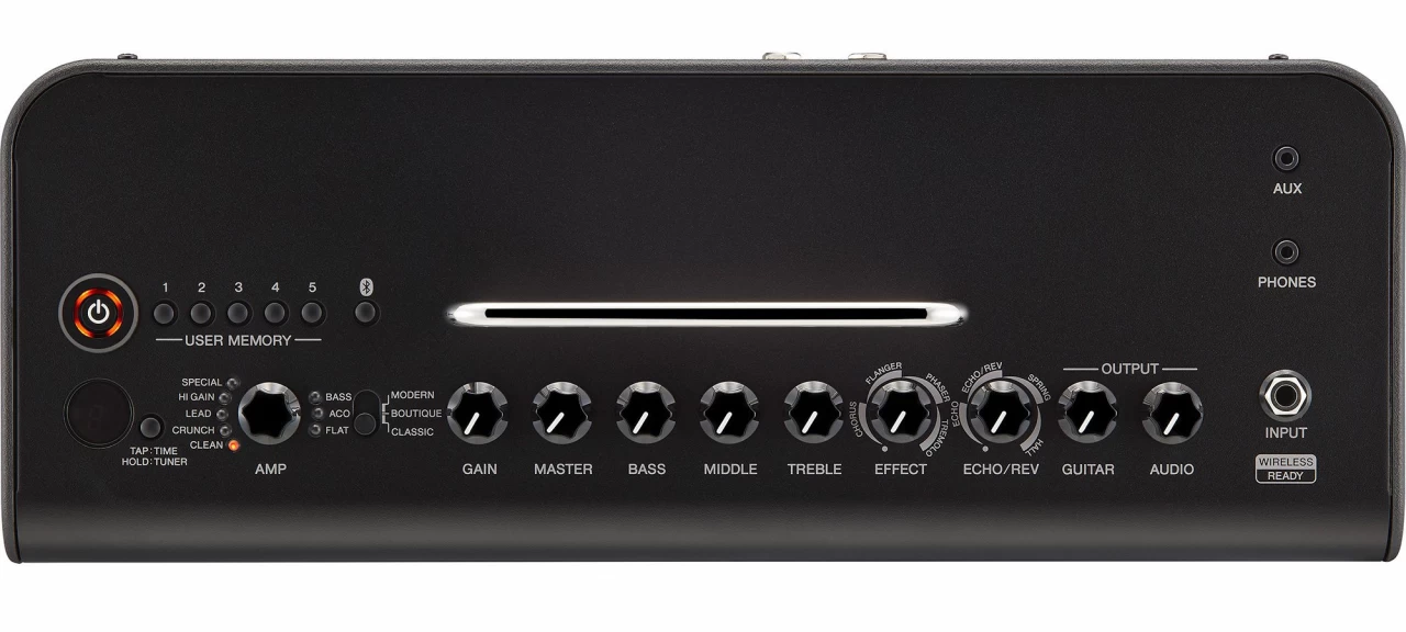– Effekte: CHORUS / FLANGER / PHASER / TREMOLO / ECHO / ECHO&REVERB / SPRING REVERB / HALL REVERB / *COMPRESSOR / *NOISE GATE (* nur über die Editor-App verfügbar)
